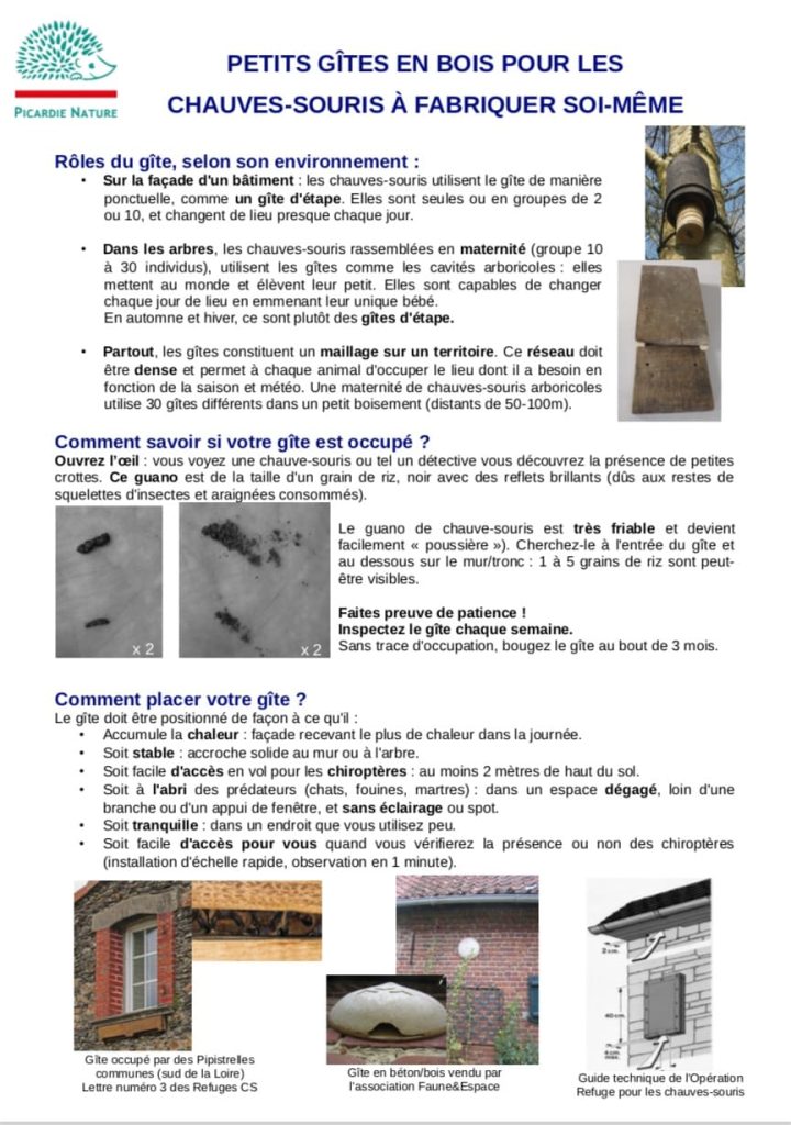 La plupart des documents qui vous sont présentés dans cette page ont été conçus par l’association Picardie nature. Cette association naturaliste est fortement impliquée dans la protection des chauves-souris et particulièrement en ce qui concerne les aménagements en bâtis pour favoriser leur présence et la cohabitation aves l’homme. N’hésitez pas à retrouver toutes leurs activités et documentations sur leur site internet http://www.picardie-nature.org/