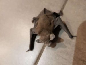 En période estivale, il est courant qu’une chauve-souris entre dans les maisons le soir venu. Ne paniquez pas ! Elle est sûrement plus désorientée que vous. Eteignez les lumières, laissez les fenêtres ouvertes et fermez la porte, elle finira par sortir d’elle même. NON les chauves-souris ne s’accrochent pas dans les cheveux !! c’est une légende.